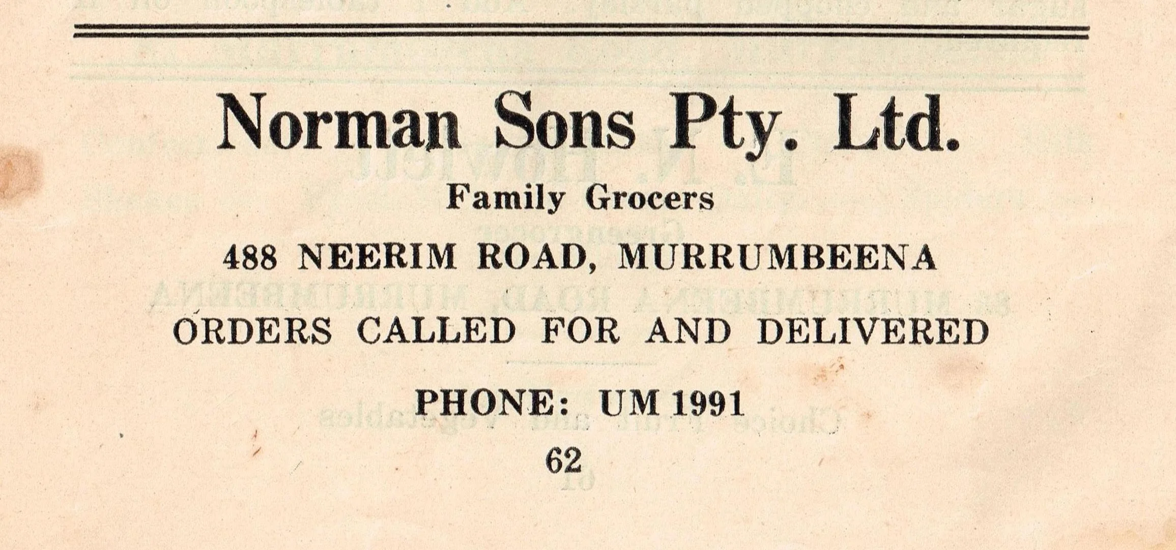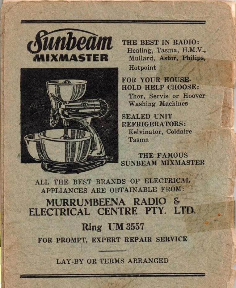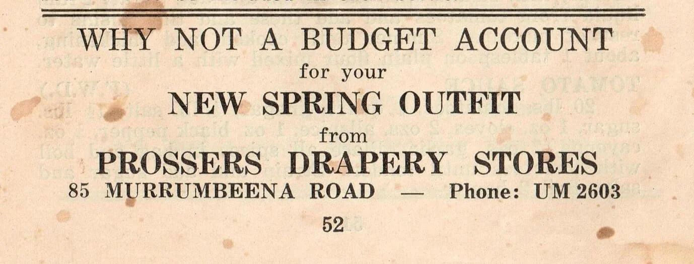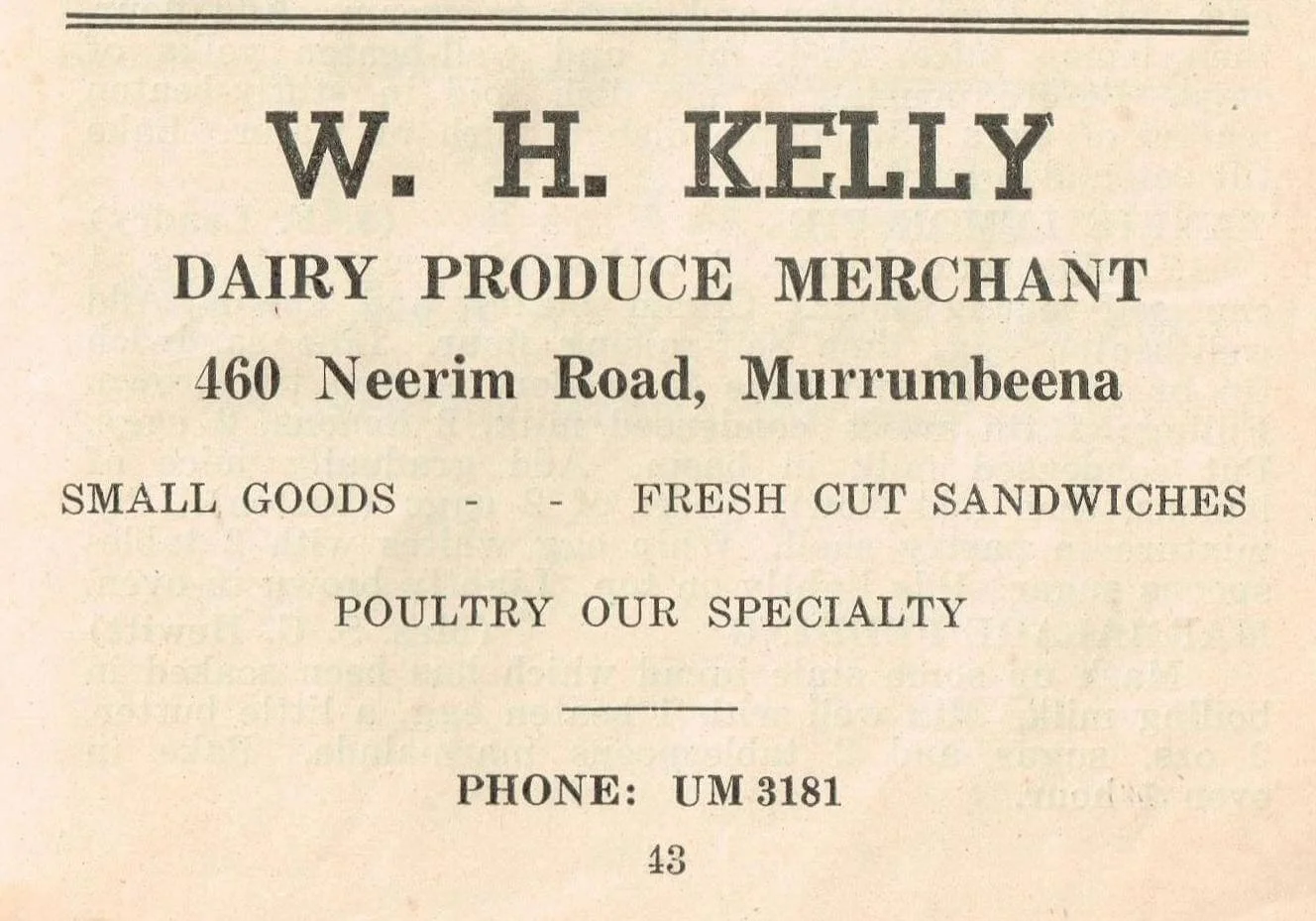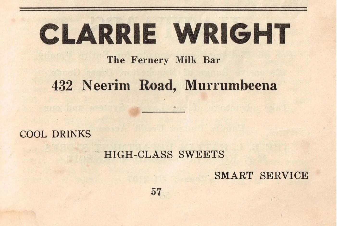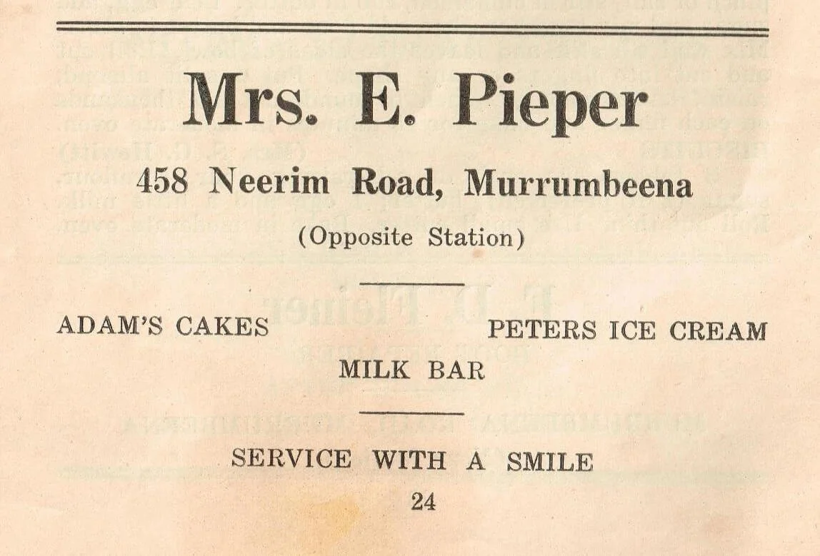 Seventy-five years after its publication, who would have thought that the sponsors’ advertisements would be of as much, if not more interest, than the recipes themselves. They paint a picture of an incredibly vibrant community that, in the small shopping strip based around the intersections of Murrumbeena and Neerim Roads, locals could buy just about everything they required for daily living. In an era with so few owning a car (let alone two) and a distinct lack of large shopping centres, it was women, largely housebound as wives and mothers, (and without the distractions of mobile phones, televisions or the internet), who were the ones who would make their way to Murrumbeena shops. There, they’d meet their friends, catch up on local news and compare notes on their children, before heading home. Is it any wonder that so many older people remember this time in Australia’s history so fondly and as the ‘good old days?’