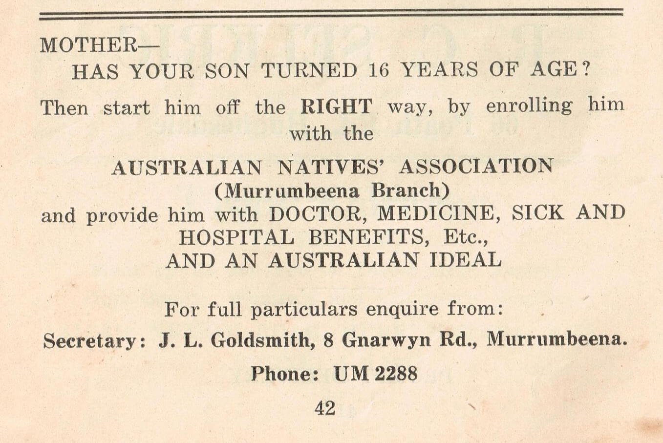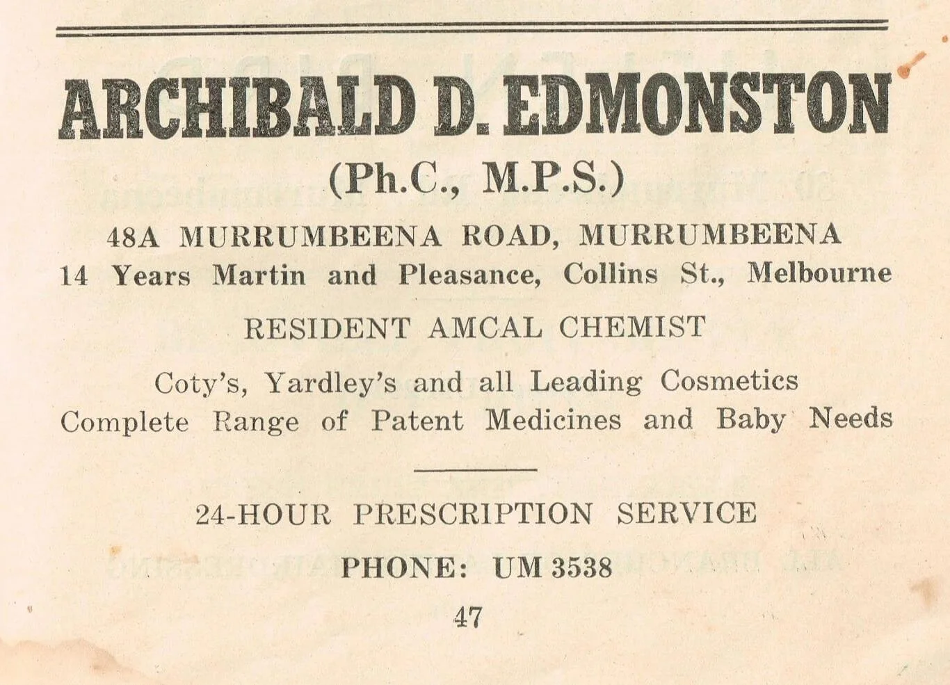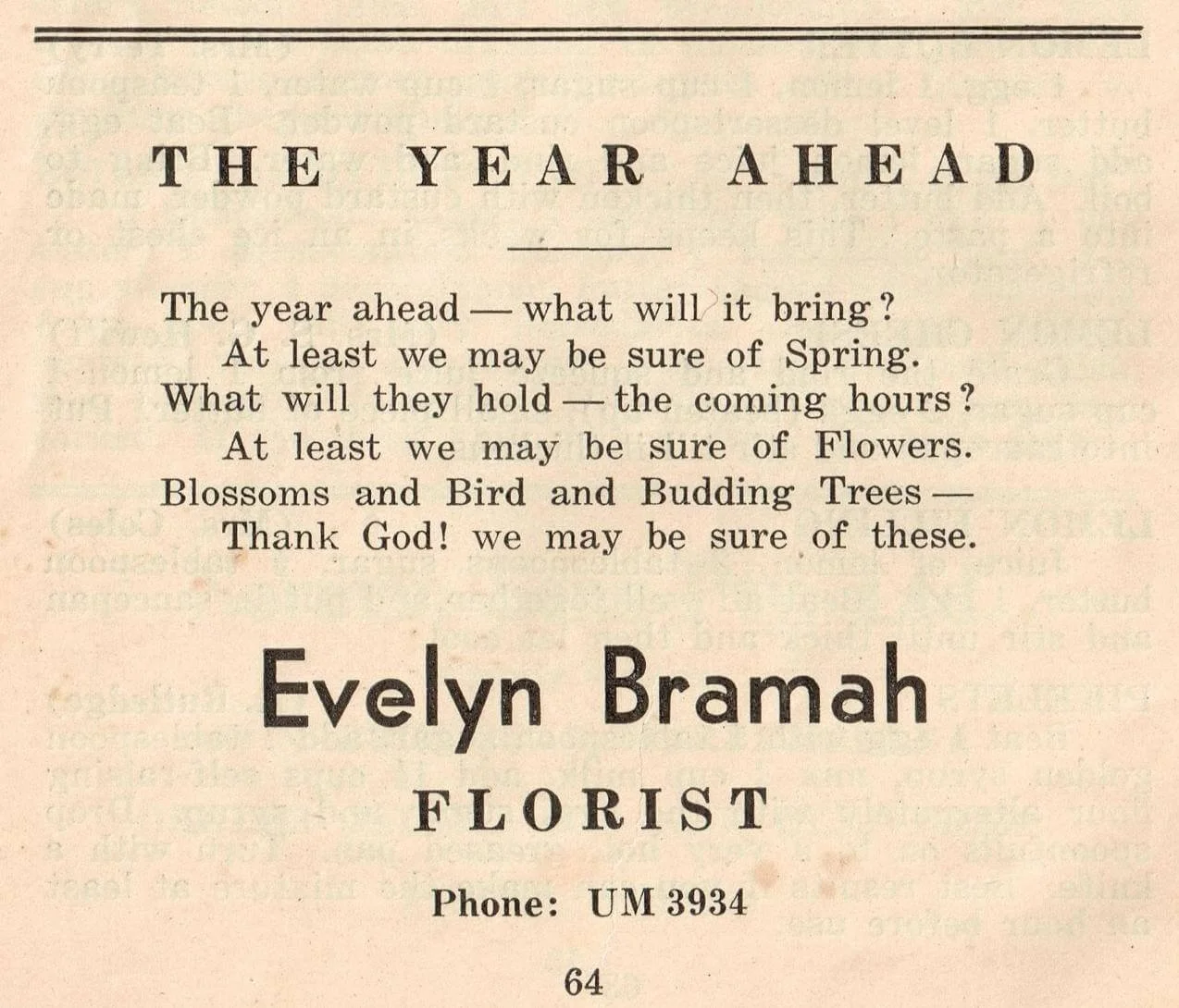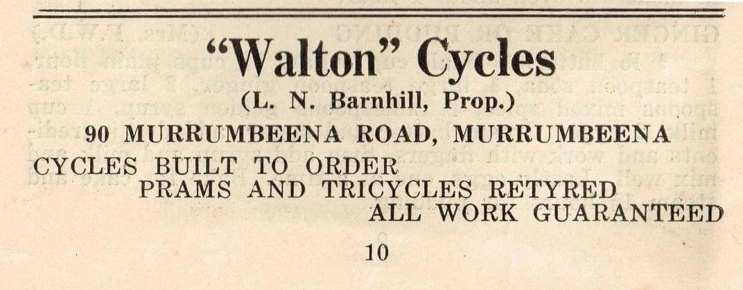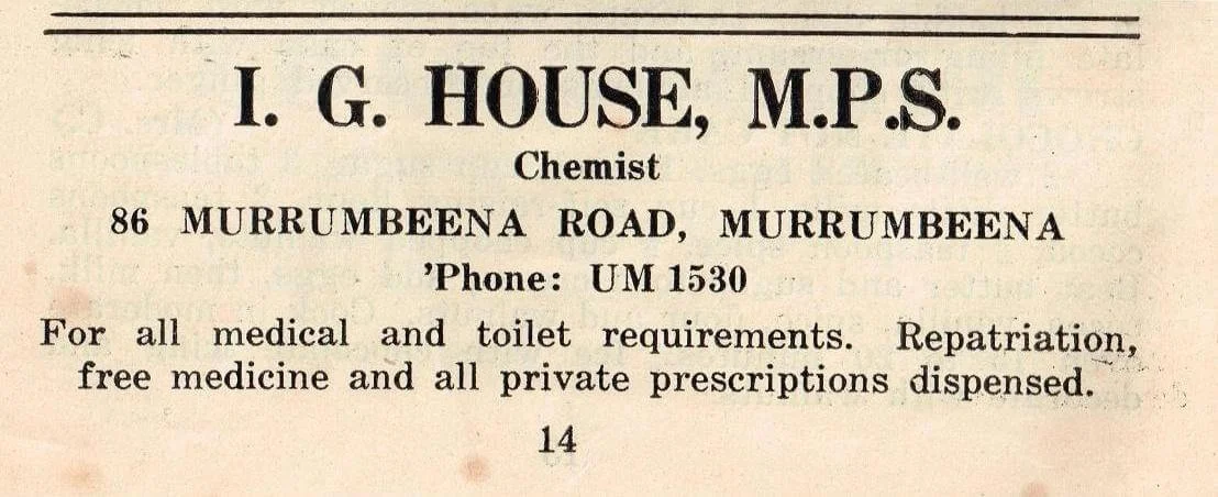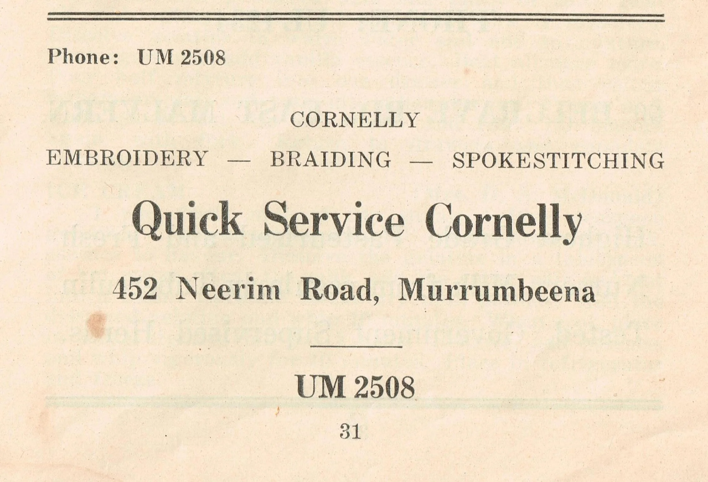 Seventy-five years after its publication, who would have thought that the sponsors’ advertisements would be of as much, if not more interest, than the recipes themselves. They paint a picture of an incredibly vibrant community that, in the small shopping strip based around the intersections of Murrumbeena and Neerim Roads, locals could buy just about everything they required for daily living. In an era with so few owning a car (let alone two) and a distinct lack of large shopping centres, it was women, largely housebound as wives and mothers, (and without the distractions of mobile phones, televisions or the internet), who were the ones who would make their way to Murrumbeena shops. There, they’d meet their friends, catch up on local news and compare notes on their children, before heading home. Is it any wonder that so many older people remember this time in Australia’s history so fondly and as the ‘good old days?’